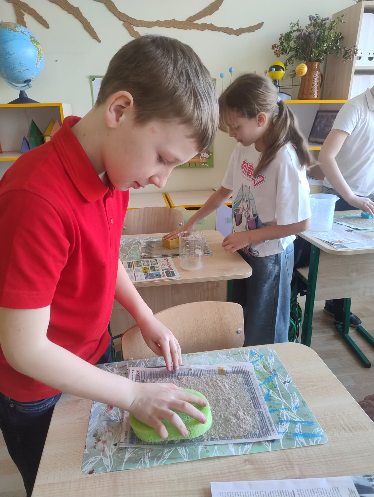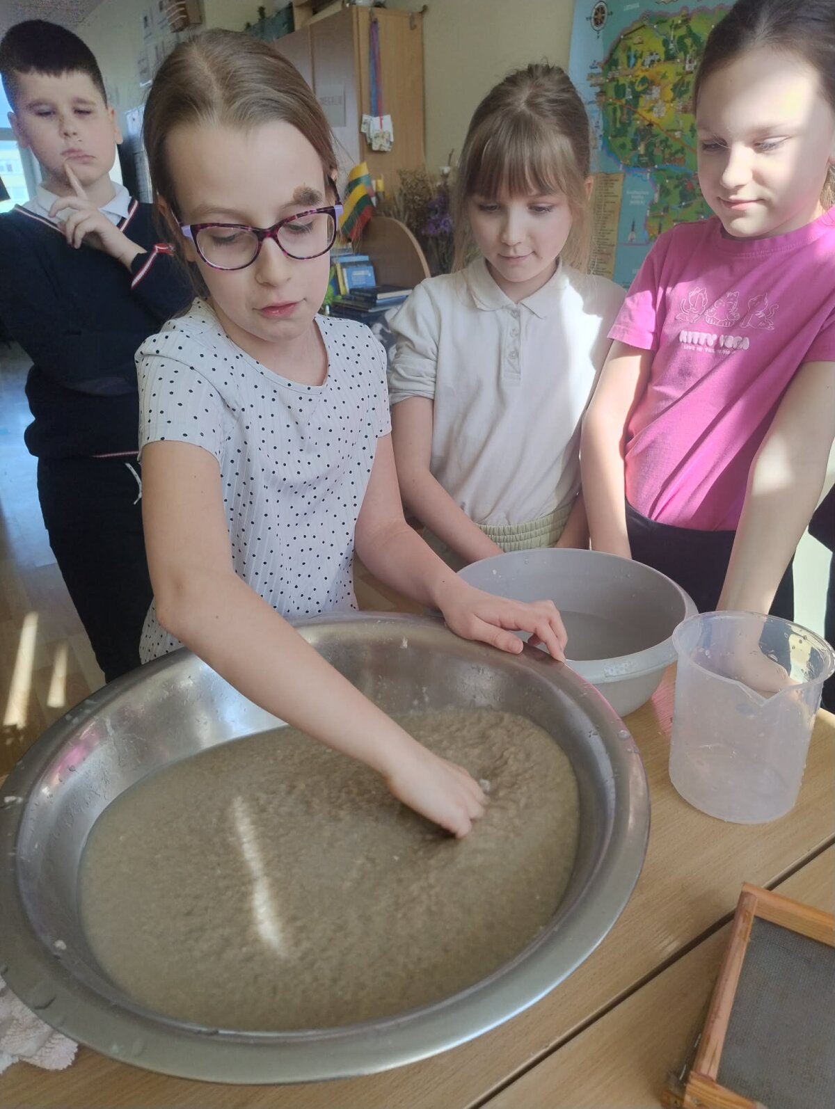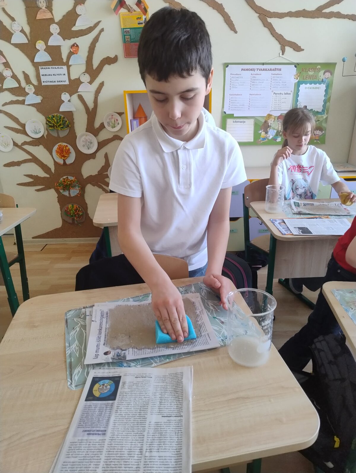 3b klasės mokiniai, padedami mokytojos Angelės Narkunienės ir mokinio padėjėjos Inesos Kazakevičiūtės – Večkienės, įgyvendino Žemės dienai skirtą kūrybinį ir prasmingą projektą „Popieriaus prikėlimas antram gyvenimui“.